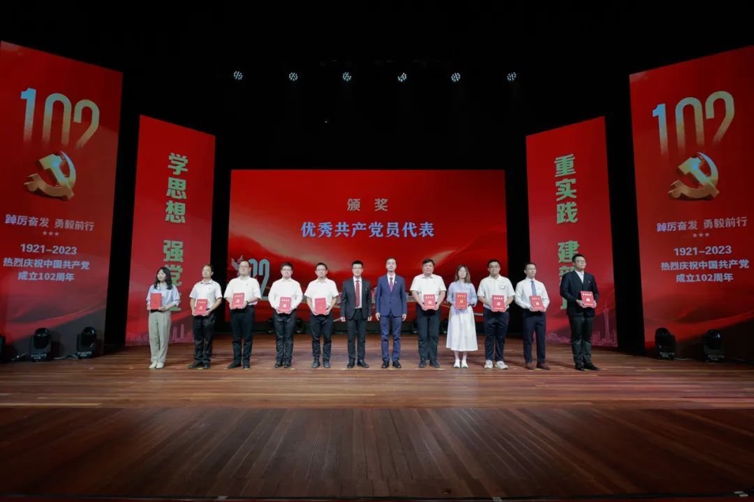 優(yōu)秀共產(chǎn)黨員代表上臺(tái)領(lǐng)獎(jiǎng)