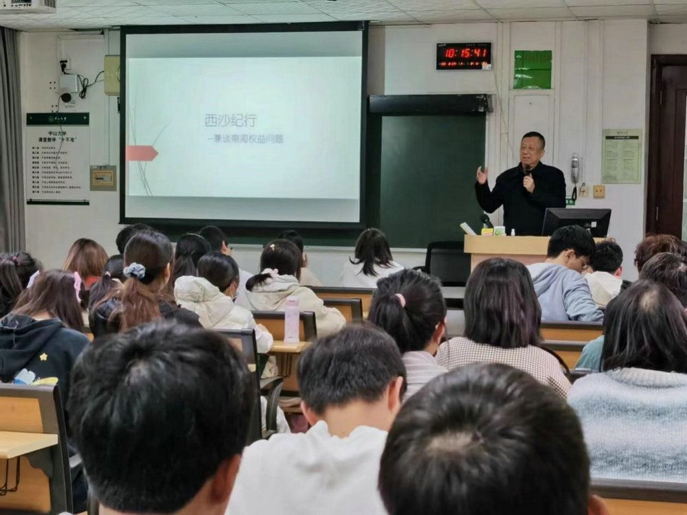 退休教師王建華教授為南校園一年級本科生講授西沙科考及學院歷史