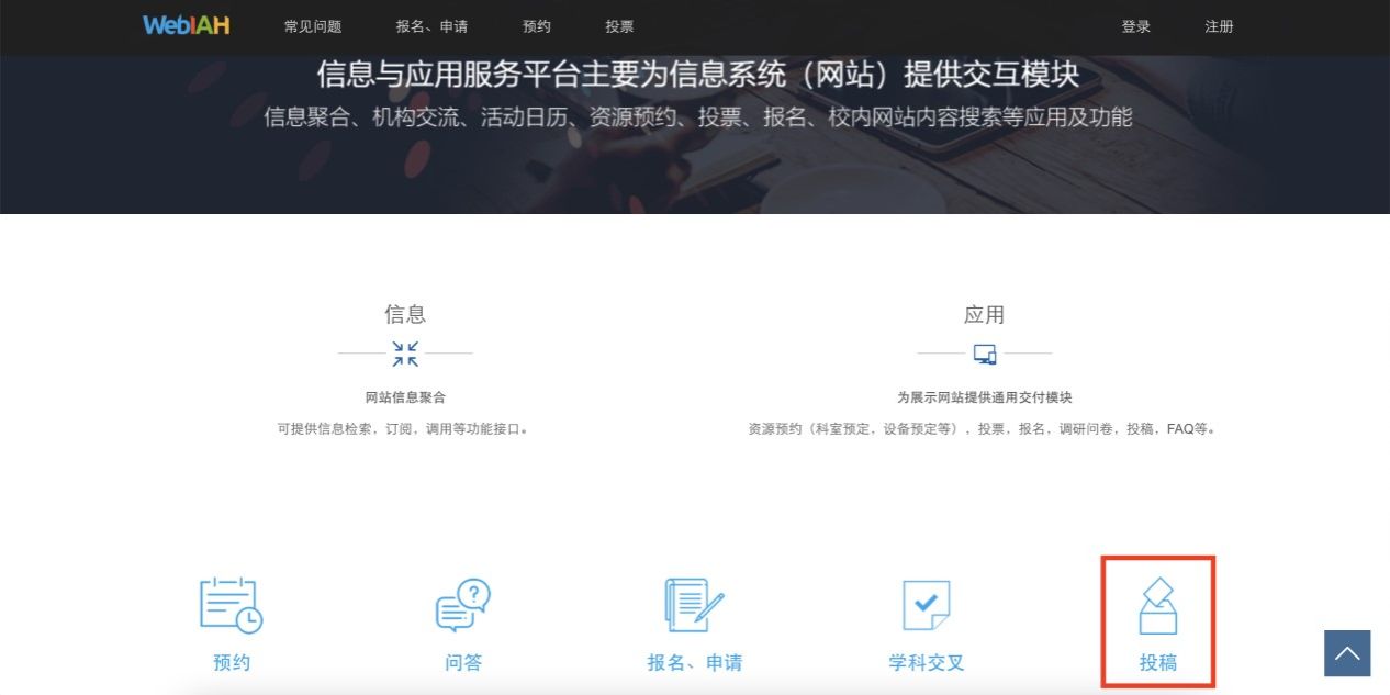 信息與應用服務平臺首頁右下角為投稿系統入口