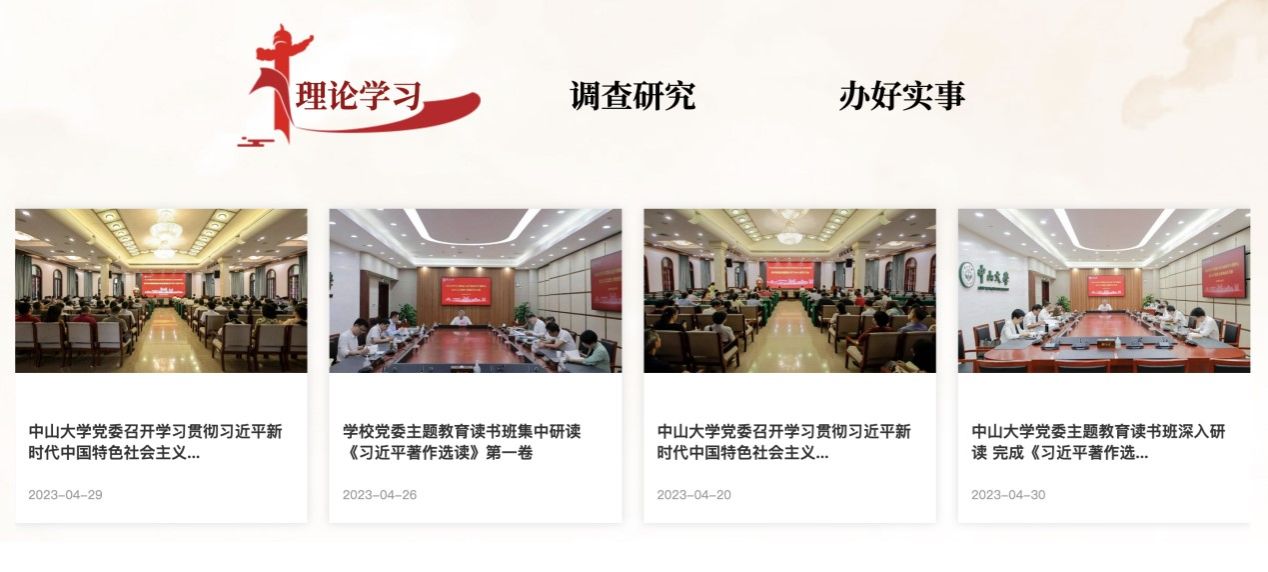 中大新聞網廣州5月3日電(記者邱清萌)4月30日,中山大學學習貫徹習近平新時代中國特色社會主義思想主題教育專題網站在中山大學主頁正式上線。這是學校主題教育主要日常宣傳陣地,各二級黨組織要切實落實以學鑄魂、以學增智、以學正風和以學促干的要求,做好主題教育宣傳工作,助力主題教育任務目標的全面實現。
