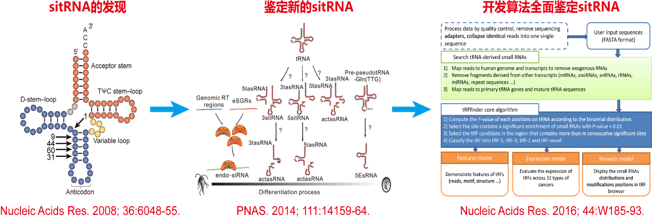 圖1. tRNA衍生的非編碼RNA新家族(sitRNA)的發現及鑒定算法
