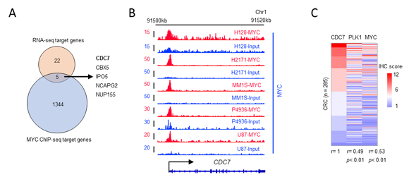 通過整合分析RNA-seq和ChIP-seq數據,發現PLK1-MYC-CDC7信號通路在調控結直腸癌化療耐藥中發揮重要功能,為PLK1抑制劑的臨床運用提供了明確的藥理機制(圖4)。