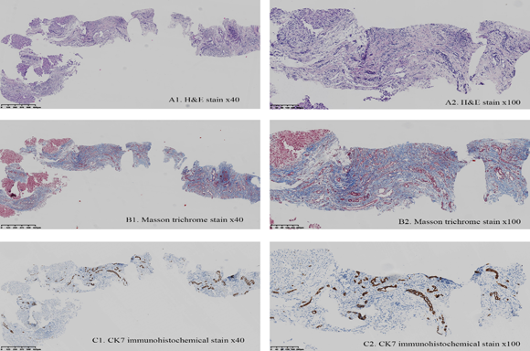 先天性肝纖維化(CHF)屬于常染色體隱性遺傳病,主要由于PKDH1基因突變引起,其發病率約為1/10,000-20,000,常見于兒童,主要表現為肝膽管、腎集合管發育障礙等。肝組織病理以門管區結締組織增生、小膽管增生為特征,病程后期一般均會導致門脈高壓癥,出現消化道出血、肝性腦病等危及生命的并發癥,臨床較為罕見,且成人相關報道甚少,因而很容易造成誤診。據附屬第三醫院疑難肝病團隊的研究結果顯示,在中國人群中PKHD1基因突變所致CHF的比例不足1/4,這提示中國人群中CHF存在其他基因變異的可能性較大。