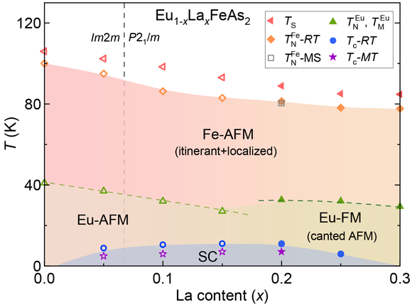 圖1. Eu1-xLaxFeAs2的電子態相圖