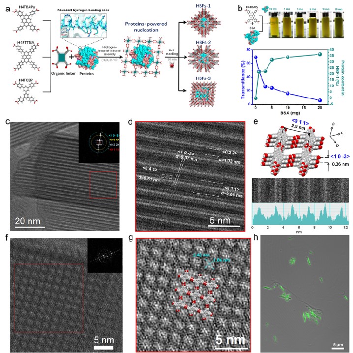 圖1. 蛋白質(zhì)導(dǎo)向的氫鍵組裝策略及雜交框架的冷凍電鏡結(jié)構(gòu)