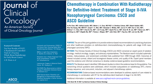 臨床指南是指基于循證醫學制定的可幫助醫生和患者根據特定的臨床情況做出最優決策的指導意見,在臨床實踐中具有巨大影響力。在腫瘤領域,國際權威的美國國立綜合癌癥網絡(NCCN)指南目前應用最為廣泛。然而,由于鼻咽癌主要高發于以我國為主的亞洲地區,且不同地區之間在藥物及診療手段上存在差異,NCCN鼻咽癌指南在專業性及可及性上仍有不足。對此,以馬駿教授和孫穎教授為代表的CSCO鼻咽癌專家組向世界上規模最大、最權威的腫瘤專業學術組織ASCO發出了合作邀請,雙方協力制定了這部鼻咽癌國際指南。與其他國際指南相比,其亮點包括有以下三方面: