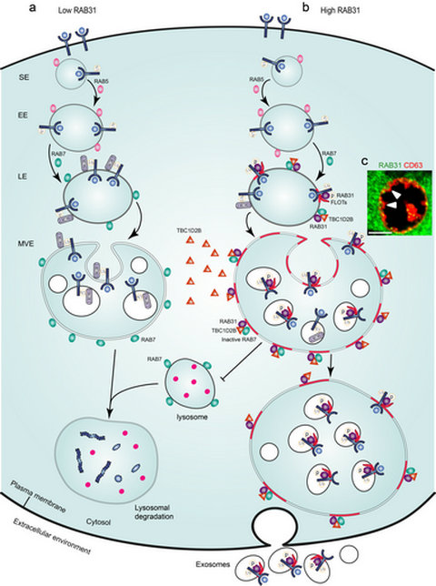 RAB31標(biāo)記并控制外泌體通路的作用模式圖