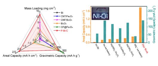 多孔鉍-碳復合材料和所研發的鎳鉍電池的面積容量和質量比電容