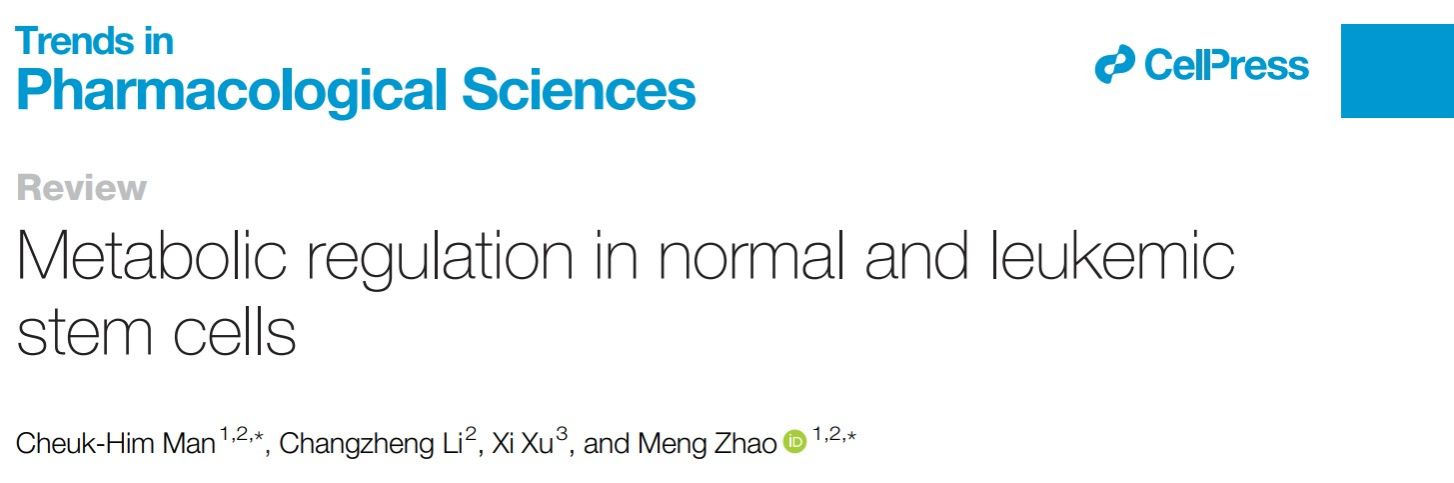 2024年9月20日,文卓謙教授與趙萌教授在《Cell》雜志子刊《Trends in Pharmacological Sciences》上發表了一篇題為《Metabolic Regulation in Normal and Leukemic Stem Cells》的綜述文章。該文章結合兩位教授課題組的最新研究成果與國內外相關報道,系統梳理了細胞代謝如何精細調控造血干細胞(HSC)的代謝活動和功能維持的機制。文章詳細探討了HSC在增殖與衰老過程中如何通過葡萄糖、氨基酸及脂質代謝調控自噬、氧化還原反應和蛋白質穩態等細胞應激反應的分子機制,同時探討了相關的臨床干預策略。
