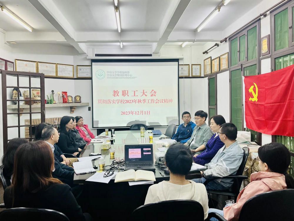中大新聞網(wǎng)訊(通訊員宋宇)12月1日下午,學(xué)報(bào)編輯部(期刊管理中心)在南校園編輯部會(huì)議室召開(kāi)全體教職工大會(huì)專題傳達(dá)學(xué)習(xí)學(xué)校2023年秋季工作會(huì)議精神,編輯部主任彭玉平、各版主編、副主編以及全體教職工出席會(huì)議。
