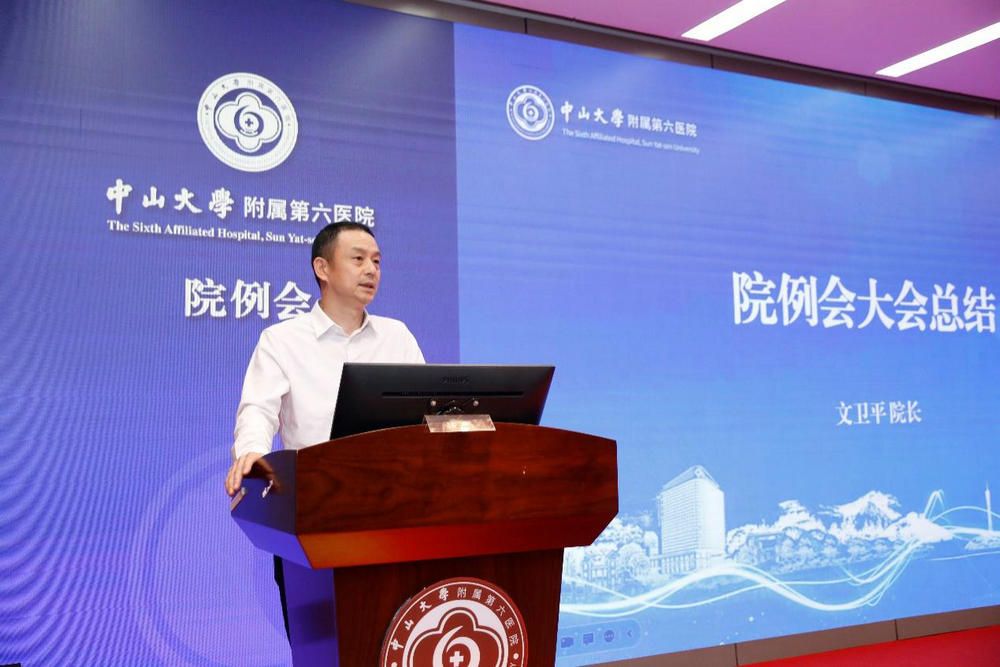附屬第六醫院院長文衛平在總結發言中,重點圍繞高松校長報告中的“科技自立自強”“創新”“交叉融合”“服務國家戰略與粵港澳大灣區發展”等關鍵詞深入交流了學習收獲和工作思考。他指出,醫院要積極對接國家戰略需求,持續推進“有組織科研”相關工作,堅持目標導向和自由探索相結合;探索引入“成本分擔”,高效整合醫院實驗場地設備資源,圍繞診斷、治療和健康管理,做有六院特色的科學研究,促進學科交叉,推動成果轉化,助力醫院高質量發展。同時,他強調,要深化六院特色合作模式,讓優勢學科“走出去”“強引領”,共同提升區域醫療衛生服務能力,讓人民群眾在家門口也能享受到優質的醫療服務。