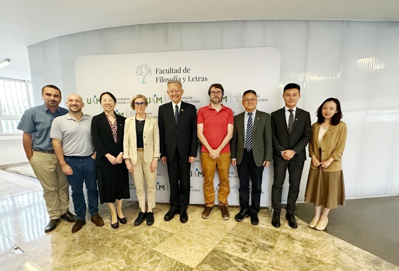 論壇舉辦前,代表團一行于6月18日訪問了西班牙卡米亞斯大主教大學和馬德里自治大學。在卡米亞斯大主教大學,代表團與該校社會科學與人文學院副院長Jose Manuel Saenz Rotko、工程學院副院長Pablo Frías和金融學院國際項目負責人Jorge Calvo展開了深入的交流。西班牙卡米亞斯大主教大學以卓越的教育質量和強大的社會影響力而聞名,學校注重國際化交流與合作,與全球眾多知名大學和研究機構建立了合作關系。陳春聲書記介紹了近年學校發展主要情況,雙方對繼續加強推動兩校學生交換、聯合培養進行了深入討論。在馬德里自治大學,代表團與該校校長代表Javier Román Gonzalez、文哲學院副院長María Leticia Herrero、東亞研究中心主任Mario Esteban Rodriguez進行了座談交流。馬德里自治大學是西班牙綜合排名穩居前三的著名公立綜合性大學。陳春聲書記重點介紹了中山大學三校區五校園的基本情況,突出了學校在人才培養、科學研究以及科研平臺方面的優勢。雙方能進一步加強在教育、科研和文化等領域的交流合作。岡薩雷斯校長表示,通過此次會談,對中山大學有了更深入的了解,未來將積極推動本校與中山大學的交流與合作,推動多學科、多領域的協作和共贏。