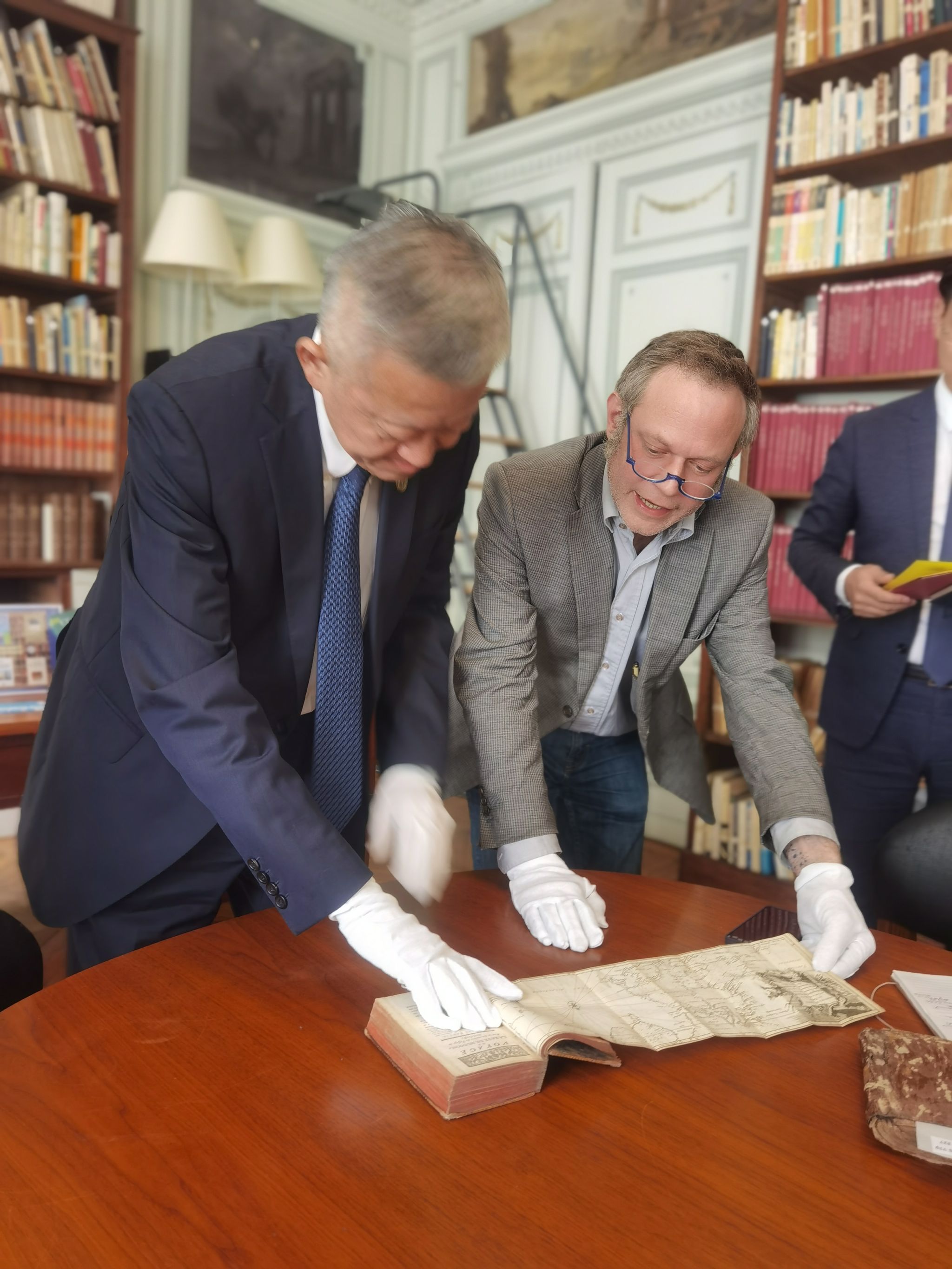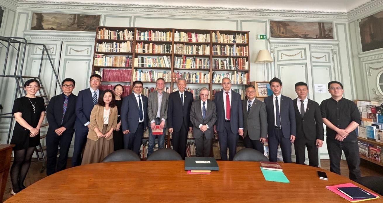 6月20日下午,陳春聲書記率代表團一行訪問了法國海外科學院,與科學院終身秘書長Dominique Barjot教授、科學院圖書館館長Pierre-Yves BELFILS教授、聯合國教科文組織前外交官Andrei Chevelev、聯合國教科文組織非洲優先與對外關系部門亞太事務部對外關系專員、中山大學2006級本科校友王瑋博士等開展了深入交流。法國海外科學院是1922年成立的致力于全球法語國家與地區研究的國家級科研機構,目前擁有院士275人,也是相關地區研究資料最豐富的單位。海外科學院在法國區域國別研究、海外領地治理以及國際發展援助等領域也發揮著重要作用。