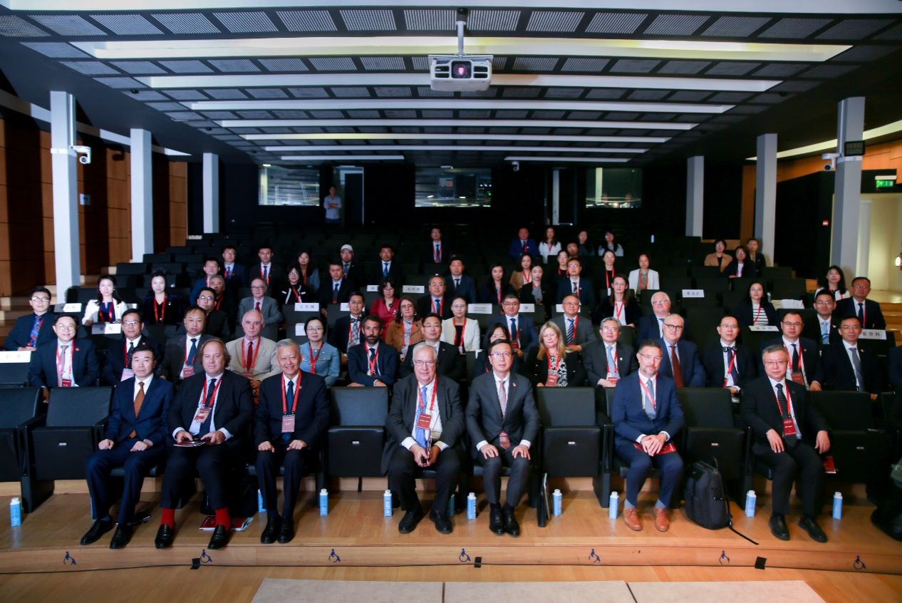 中法兩國教育部部長與在本次論壇簽署協議的三所高校代表在大會論壇上合影
