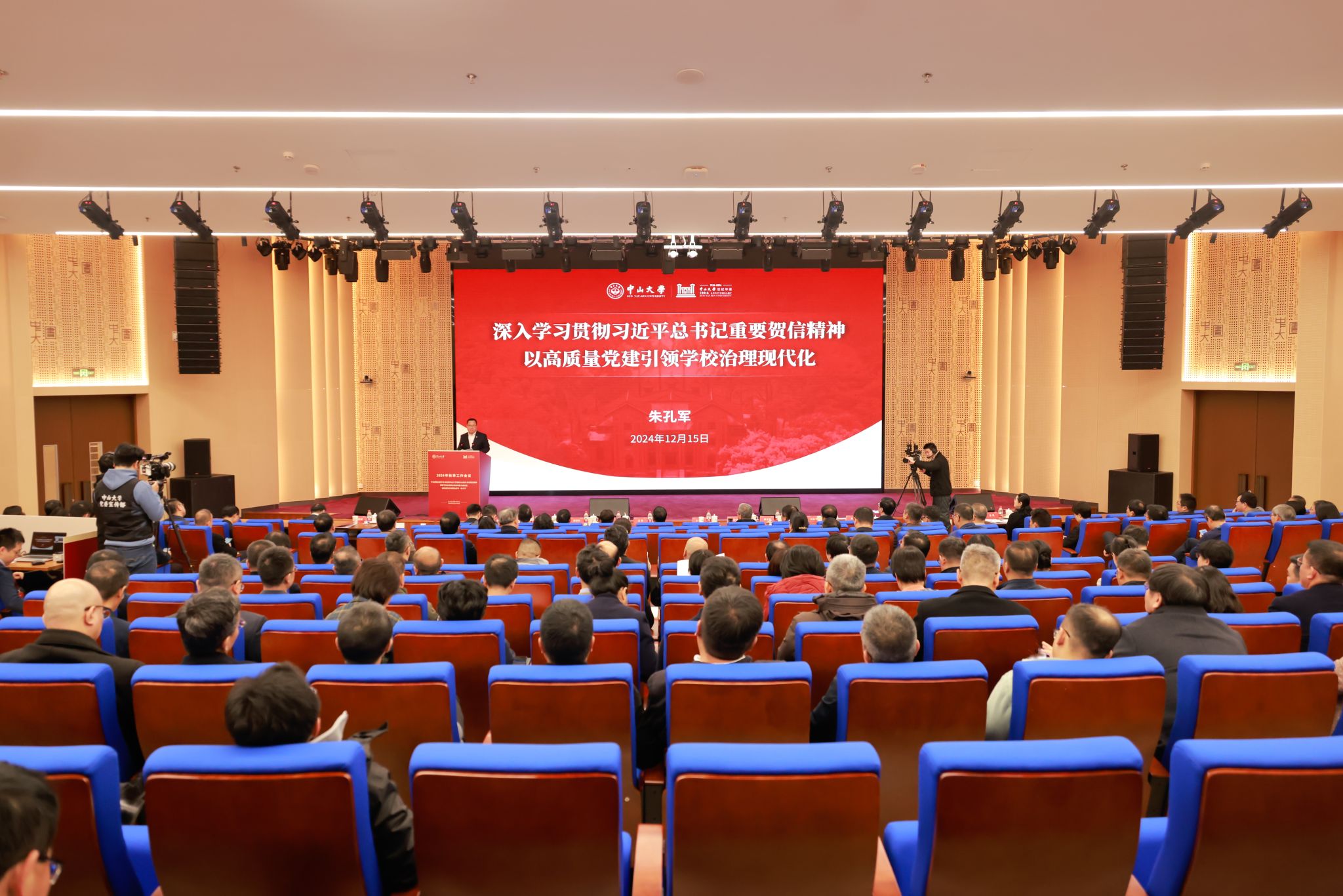 校黨委書記朱孔軍發(fā)表題為“深入學習貫徹習近平總書記重要賀信精神 以高質(zhì)量黨建引領(lǐng)學校治理現(xiàn)代化”的講話。