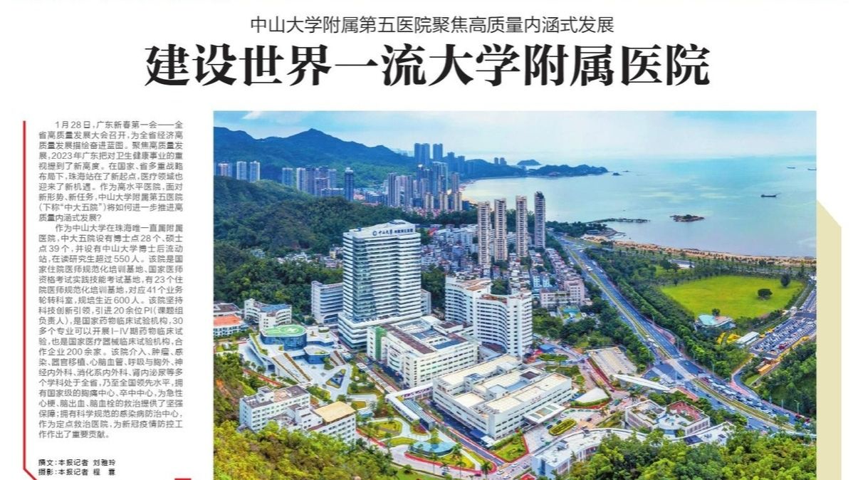 1月28日,廣東新春第一會——全省高質(zhì)量發(fā)展大會召開,為全省經(jīng)濟(jì)高質(zhì)量發(fā)展描繪奮進(jìn)藍(lán)圖。聚焦高質(zhì)量發(fā)展,2023年廣東把對衛(wèi)生健康事業(yè)的重視提到了新高度。在國家、省多重戰(zhàn)略布局下,珠海站在了新起點(diǎn),醫(yī)療領(lǐng)域也迎來了新機(jī)遇。作為高水平醫(yī)院,面對新形勢、新任務(wù),中山大學(xué)附屬第五醫(yī)院(下稱“中大五院”)將如何...