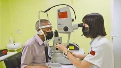 走進馬爾代夫首都馬累附近的胡魯馬累醫院,一棟白色小樓格外醒目。大廳里,一塊金色牌匾上寫著:阿布杜拉·阿布杜爾·哈基姆眼科中心,中華人民共和國政府慷慨援建,馬爾代夫總統易卜拉欣·穆罕默德·薩利赫2020年1月13日正式揭幕。牌匾的對面立著一排易拉寶,上面是眼科中心中國醫療專家組成員的照片及簡介。