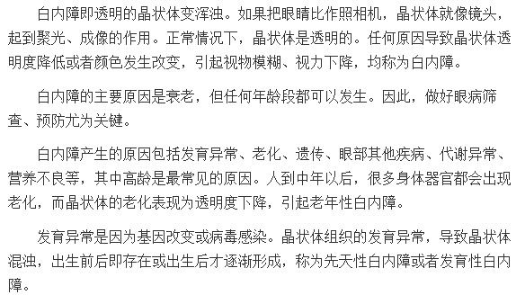 目前,白內障最有效的治療方法就是手術。主流的手術方式是“白內障超聲乳化吸除+人工晶狀體植入術”。白內障摘除后,往往要植入人工晶狀體。人工晶狀體的選擇有很多,包括單焦點、可矯正老花人工晶狀體,以及散光矯正型人工晶狀體等?;颊呖梢愿鶕€人的眼球條件、工作和生活需要進行選擇。