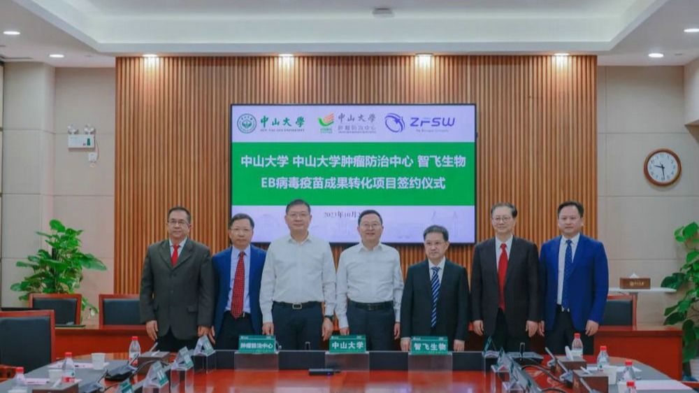 10月27日,中山大學、中山大學腫瘤防治中心與智飛生物“EB病毒疫苗合作研發與成果轉化項目”舉行簽約儀式。根據協議,中山大學和中山大學腫瘤防治中心向智飛龍科馬轉讓EB病毒候選疫苗產品的相關專利技術,并對后續開發工作提供技術支持和指導,由智飛龍科馬承擔合作產品的研發、生產、注冊和商業化工作。