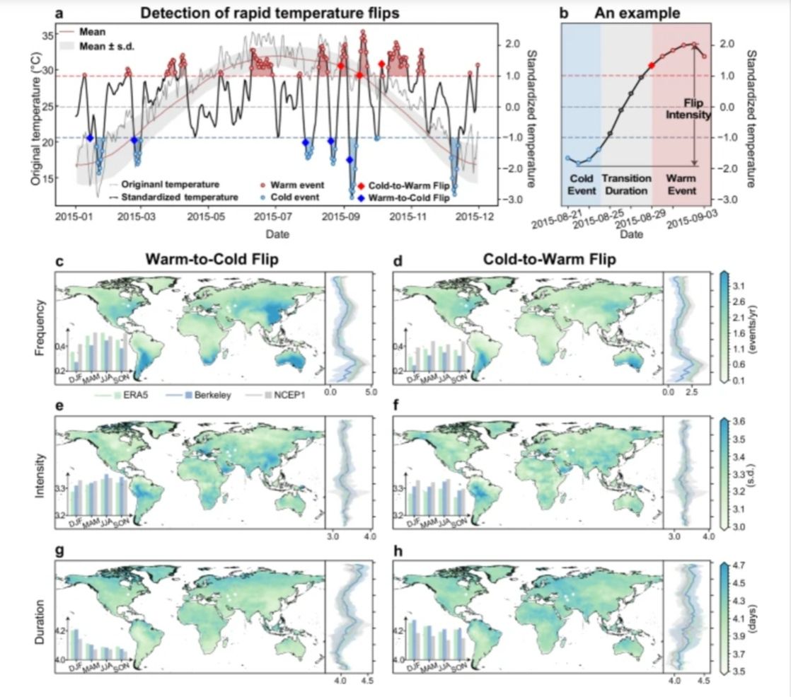 中山大學(xué)教授劉小平、羅明團(tuán)隊(duì)與中國(guó)科學(xué)院地理科學(xué)與資源研究所研究員裴韜團(tuán)隊(duì)合作,首次揭示了全球變暖背景下氣溫冷暖翻轉(zhuǎn)的新現(xiàn)象,即氣溫在幾天內(nèi)由異常偏暖快速轉(zhuǎn)變?yōu)楫惓F洌蛴僧惓F淇焖俎D(zhuǎn)變?yōu)楫惓F臉O端事件。近日,相關(guān)成果在線發(fā)表于《自然-通訊》。氣溫冷暖急劇交替的“過(guò)山車”式變化給社會(huì)和生態(tài)...