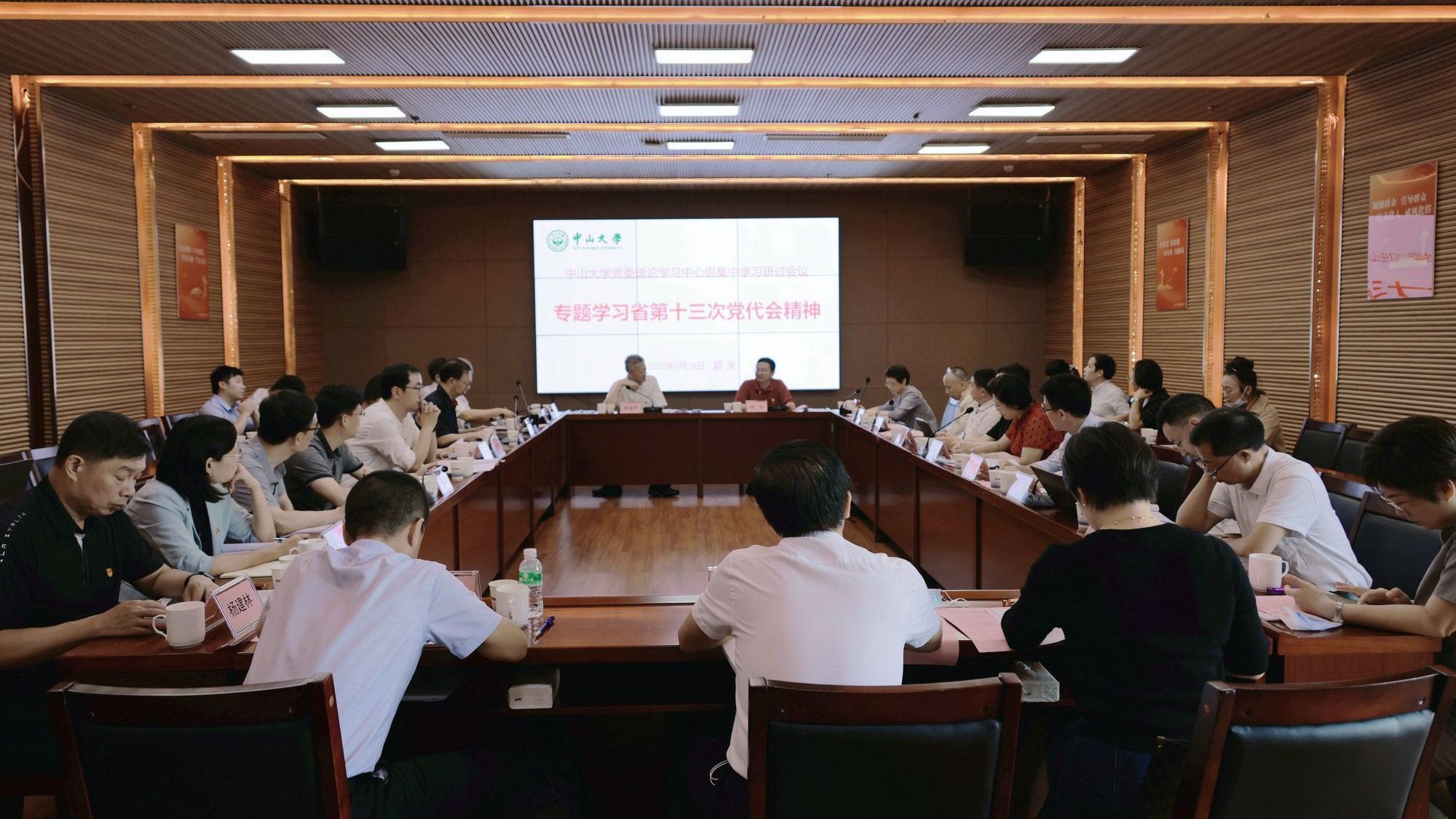 中大新聞網廣州6月29日電(記者蔣靜)6月24日,我校黨委理論學習中心組在韶關市仁化縣城口鎮紅軍長征粵北紀念館會議室專題學習省第十三次黨代會精神。中心組成員圍繞學習內容,聯系工作實際進行集中學習研討。校黨委書記陳春聲主持集中學習研討。我校相關職能部門負責人和院系專家代表,以及韶關市和仁化縣相關領導列席會議。