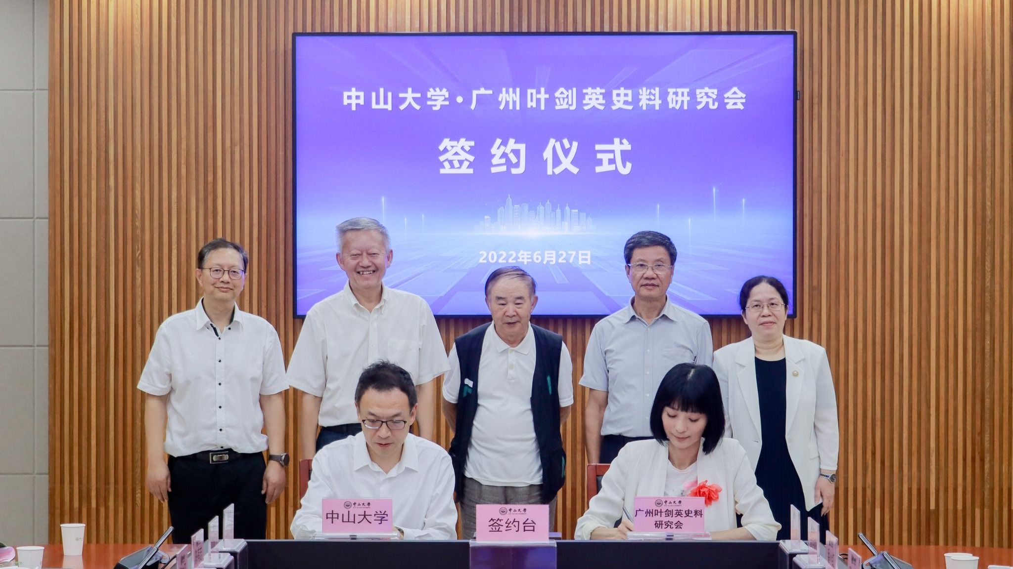 中大新聞網廣州6月30日電(記者吳立堅)27日晚,中山大學與廣州葉劍英史料研究會研究合作協議簽約儀式在中山大學廣州校區南校園舉行。根據協議,中山大學將設立葉劍英史料專藏與“葉劍英史料研究中心”,雙方將共同加強史料的收集整理工作,并設立專項科研經費開展相關學術活動。