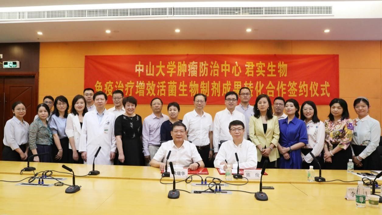 中大新聞網(wǎng)廣州8月13日電(通訊員陳鋆、趙現(xiàn)廷、鄭敏珊)8月11日,中山大學(xué)腫瘤防治中心徐瑞華教授團(tuán)隊(duì)與上海君實(shí)生物醫(yī)藥科技股份有限公司在廣州就“免疫治療增效活菌生物制劑”項(xiàng)目簽署轉(zhuǎn)化協(xié)議。雙方將加強(qiáng)產(chǎn)學(xué)研合作,充分發(fā)揮各自優(yōu)勢(shì),加快推進(jìn)免疫治療活菌增效劑的研發(fā)上市,為晚期腫瘤患者帶來(lái)新的希望。