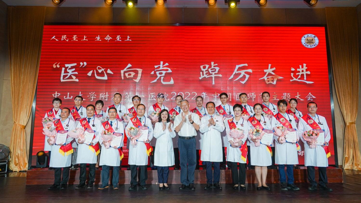 中大新聞網(wǎng)廣州8月22日電(通訊員梁嘉韻)在第五個(gè)“中國醫(yī)師節(jié)”到來之際,8月18日下午,中山大學(xué)附屬第一醫(yī)院舉行“人民至上、生命至上、‘醫(yī)’心向黨、踔厲奮進(jìn)”醫(yī)師節(jié)慶祝大會(huì),弘揚(yáng)廣大醫(yī)師救死扶傷和英勇抗疫的精神,向每一位醫(yī)師致以敬意,并送上節(jié)日祝福。