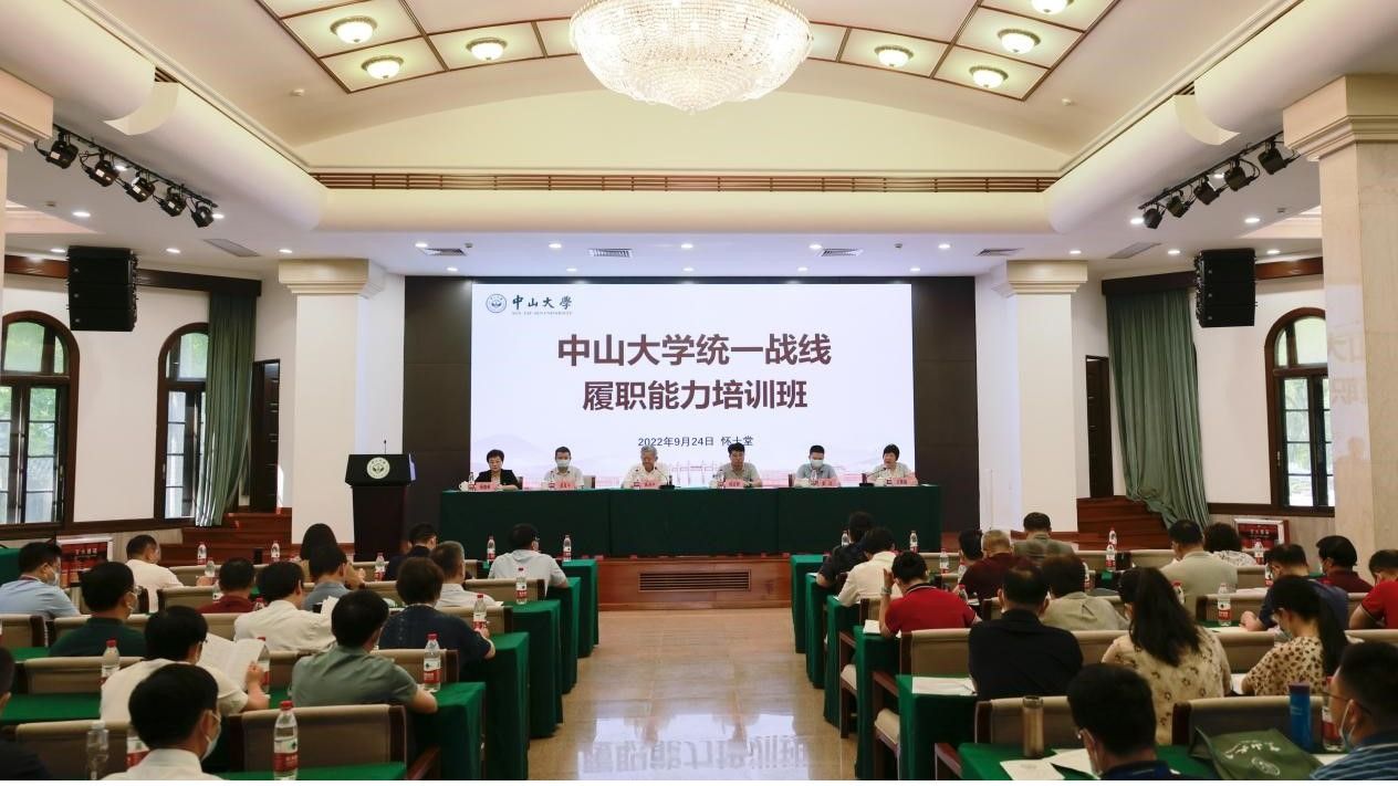 中大新聞網廣州9月27日電(通訊員何婉文)9月24日上午,中山大學2022年統一戰線履職能力培訓班開班儀式暨學習貫徹中央統戰工作會議精神專題輔導報告會在廣州校區南校園懷士堂舉行。學校各民主黨派省直基層組織、統戰團體全體班子成員、學校統戰工作領導小組成員單位負責人、各二級黨組織書記和統戰委員共200人參加。