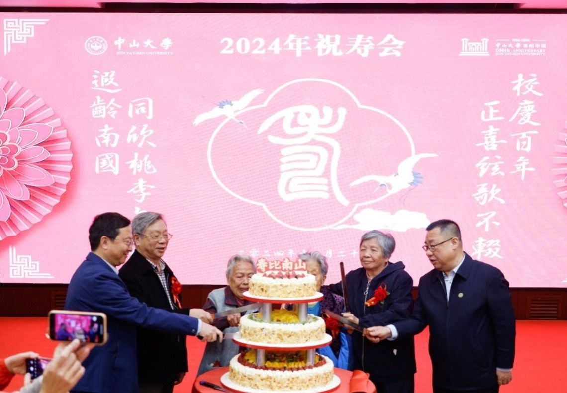 中大新聞網訊(通訊員毛水榕)11 月 28 日,中山大學 2024 年祝壽會于南校園學人館舉行,以此向離退休老同志為學校跨越式高質量發展所作出的卓越貢獻致以崇高敬意。校黨委書記朱孔軍、校長高松出席祝壽會。校本部年內滿 80 歲、90 歲、100 歲及以上的老壽星,學校離退休工作領導小組各成員單位負責人以及部分壽星親友等約160人齊聚一堂,共同見證這一溫馨時刻。朱孔軍書記、高松校長與壽星代表共切蛋糕朱孔軍書記在致辭時首先代...