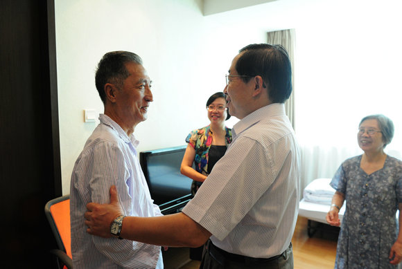 Secretary Wan Qingliang (first from right) talking with Prof. Huang Tianji (middle)