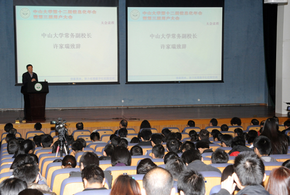 On December 20th, the12th Education Informatization Work Conference and the 3rd User Conference of Sun Yat-sen University were held on South Campus. Xu Jiarui, Executive Vice President of SYSU, and Peng Hongguang, Director of Guangdong Center of Educational Technology and Director of Audio-Visual Education Center of Guangdong Province attended and addressed the conference. More than 500 people from functional units, schools and departments, and student organizations attended the conference.