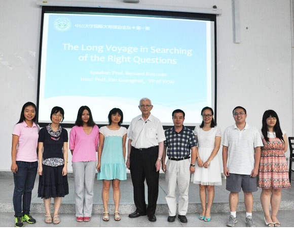 On the afternoon of June 12, the first issue of SYSU International Masters Frontiers Forum sponsored by Office of International Cooperation & Exchange was held on Zhuhai Campus. The forum invited Prof. Bernard Roizman, Member of National Academy of Sciences in the United States, as the speaker, and was chaired by Prof. Yan Guangmei, Vice President of SYSU. Prof. Ling Wenhua, Director of Office of International Cooperation & Exchange; Mr. Lin Junhong, Deputy Secretary of Party Working Committee of Zhuhai Campus; Mr. Li Guangjun, Deputy Secretary of The Fifth Affiliated Hospital; and faculty and students from The Fifth Affiliated Hospital, School of Marine Sciences and School of International Studies, a total of nearly 300 people attended the forum.