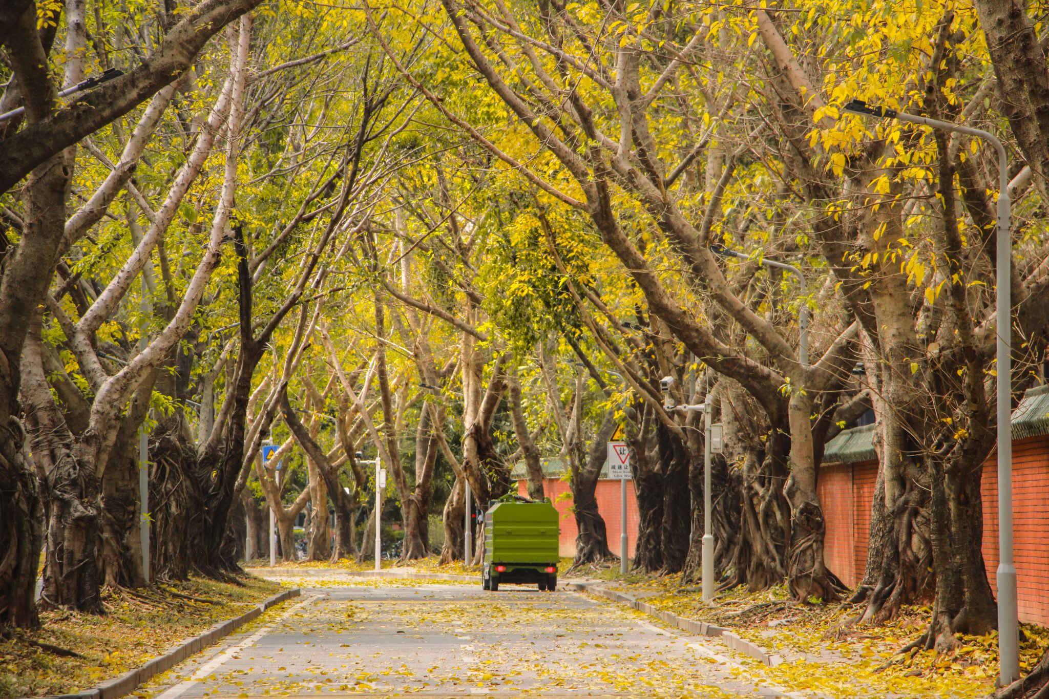 Due to Lingnan's subtropical climate, trees here shed their leaves in spring instead of winter, creating a stunning blend of half autumn, half spring.