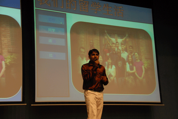 Liu Yang, monitor of primary class 1E from India, ebulliently showed his class's love for the Chinese culture during the presentation. He said:" Oversea students from all over the world get together in China because they love Chinese language and culture. We have a classmate living in Foshan. It takes him two hours to come to Guangzhou, but he never misses a class and is seldom late." Thi Dieu Ngoc Nguyen from Vietnam said that she was grateful for the help and support from teachers and classmates during her three-year of study life at SYSU. During the contest, there was also a talent show for oversea students. Karashima Hikaru from Japan sang a Chinese song Zhongguo Hua with fluency, which received loud applause from the audience and pushed the atmosphere to the climax. He said: “In America, we speak English. In Japan, we speak Japanese. While in China, naturally we should speak Chinese."