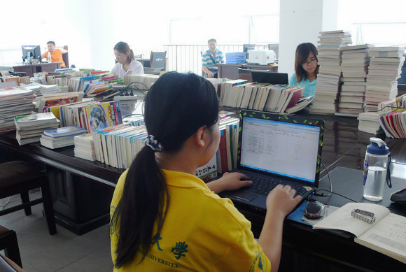 There were 44 volunteers in this year’s project, including10 graduate students from the School of Information Management and 34 undergraduate students from the Liberal Arts College. Before their departure, they attended theory training courses including information organization and practice and community library service for a week. Then from mid July to early September, four volunteer groups were sent in two shifts to Wenchuan Library and Beichuan Library and started their volunteer services spanning a month and a half. The services included the construction of Farmer’s Book House demonstration sites and library catalogue database, children’s summer activities, lectures on information literacy training, cultural exhibitions, and the daily work of libraries. Volunteers went deep into local communities in order to enrich the residents’ cultural life. They sent out questionnaires and leaflets, played outdoor films, which became the moving scenery in Wenchuan and Beichuan. During the project, volunteers reflected on their services by keeping diaries, writing reports and organizing project exhibitions in words and pictures.