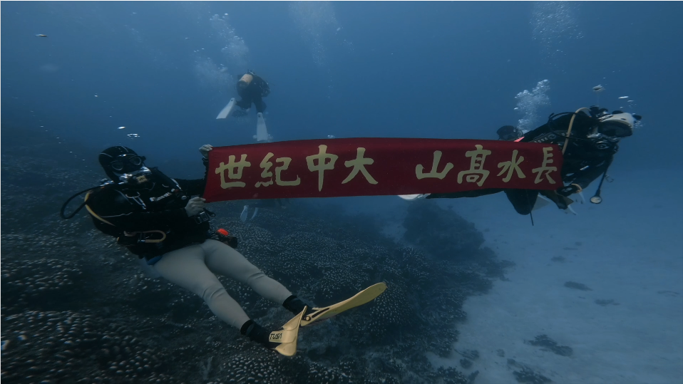 Some alumni embarked on audacious adventures, carrying the school flag to the summits of Mount Everest, the South Pole, and the highest peaks across different continents. Meanwhile, Luo Min made a unique and touching gesture by expressing love for the alma mater at the bottom of the sea in Palau.