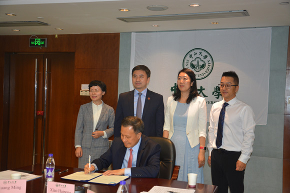 Executive Vice President Xiao Haipeng signed the memorandum of understanding on behalf of SYSU (Photo provided by Office of International Cooperation and Exchange)