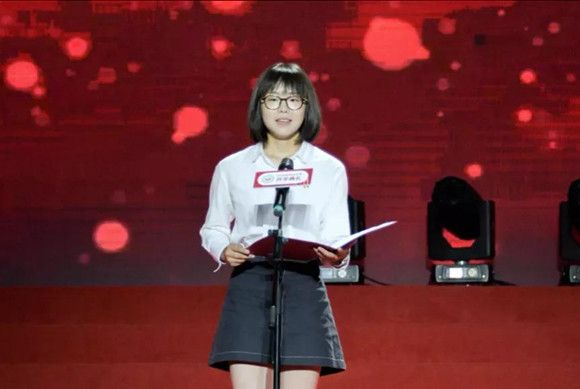 The New student representative Luo Zidan making a speech (Photo by Xu Liya)