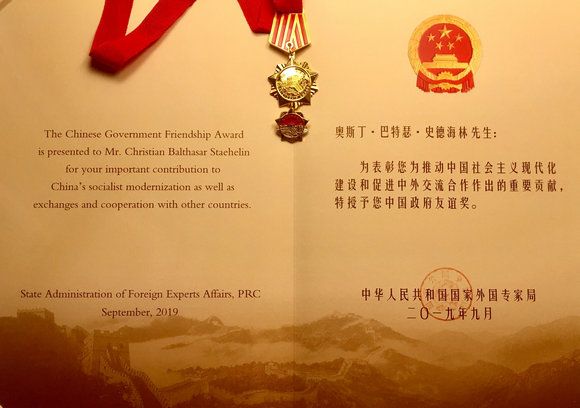 Christian Staehelin, Professor at the School of Life Sciences of Sun Yat-sen University, has received the prestigious Friendship Award from the Chinese Government. The Friendship Award is the highest honor that can be granted to a foreign expert. Awardees are chosen for their significant contributions to China’s modernization. Staehelin received the award on September 30 from Vice Premier Liu He at the Great Hall of the People in Beijing. Premier Li Keqiang expressed warm congratulations to the awardees. Staehelin lives and works at Sun Yat-sen University since 2005. The students in his laboratory perform research work on plant-microbe interactions.