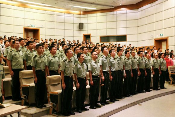 The national defence students at SYSU watching the live broadcast of the opening session of the 19th CPC National Congress
