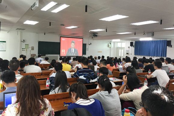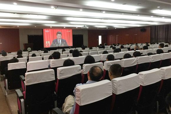 Faculty and students on Guangzhou North Campus watching the live broadcast of the opening session of the 19th CPC National Congress