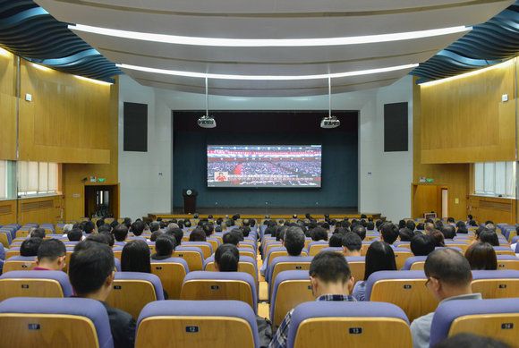 Faculty and students on Zhuhai Campus watching the live broadcast of the opening session of the 19th CPC National Congress