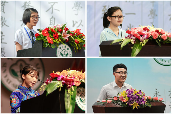 On behalf of the continuing students, Xia Yanfei, Wu Xiaolong, Aligu and Hao Bo gave a speech respectively, sharing their own experiences of study at SYSU. On behalf of the new students, Yan Yuan, Li Yihan, Hu Xiaoxiao and Zhang Yi gave a speech respectively, expressing their determination to become students who have both ability and moral integrity, able to cultivate charisma and eager to serve their country.