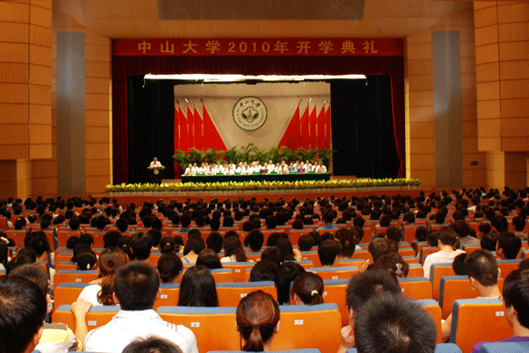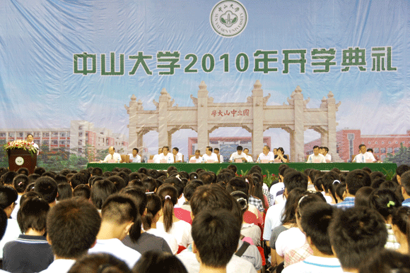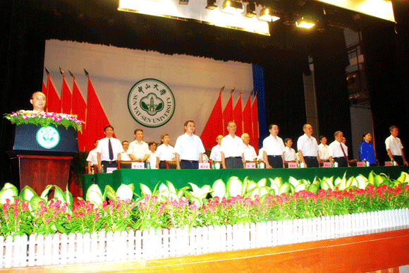 From September 9-10, opening ceremonies for new students were solemnly held at South Campus, North Campus and Zhuhai Campus respectively. The newly enrolled 7900 undergraduates and more than 6000 postgraduates and Ph. D students swore at the ceremony to bear the school motto in mind to study hard and contribute to the society. Attending the gathering were administrative officials Zhen Detao, Huang Daren, Liang Qingyin, Li Ping, Wang Jianping, Xu Ningsheng, Li Mengfeng, Chen Chunsheng, academician Su Qiang, Lin Haoran, Assistant to President Bao Jigang and deans of various schools and departments. SYSU Vice President Li Mengfeng presided over the ceremony and Vice President Chen Chunsheng and Wang Jianping administered the oath taken by new students.