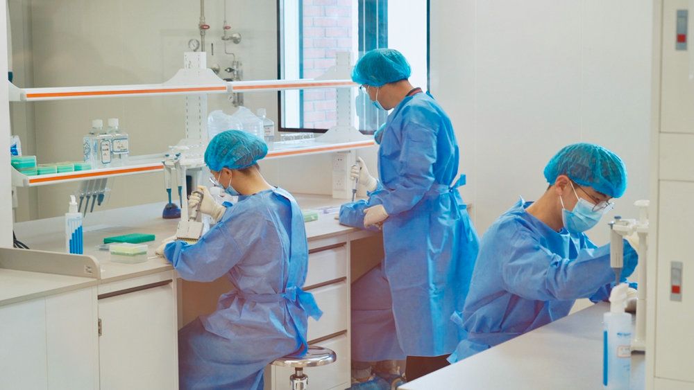 Students are doing experiments in the laboratory.