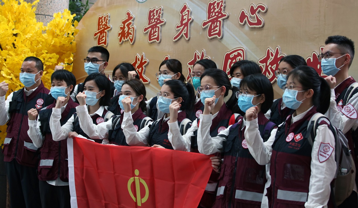 They are the third medical team to be dispatched from the hospital. A seven-member team arrived in Hong Kong two days earlier.Fifteen medical professionals from First Affiliated Hospital of Sun Yat-sen University departed Guangzhou, Guangdong province, on Wednesday, for Hong Kong to help its fight against COVID-19.