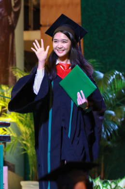 Graduation is not a farewell but a joyful gathering. The graduates show big smiles on their faces.