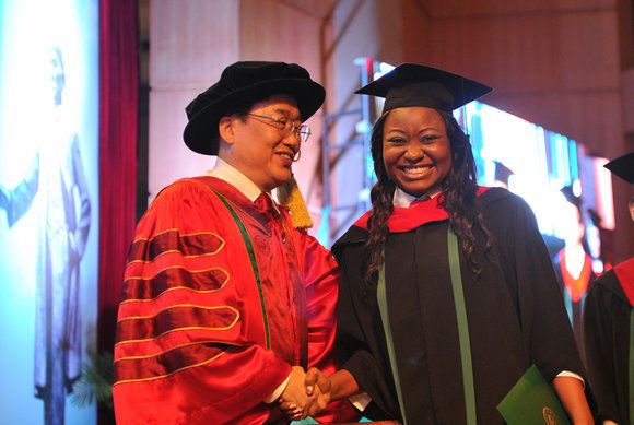 President Xu Ningsheng extended his right hand and shook hands with every graduating student.
