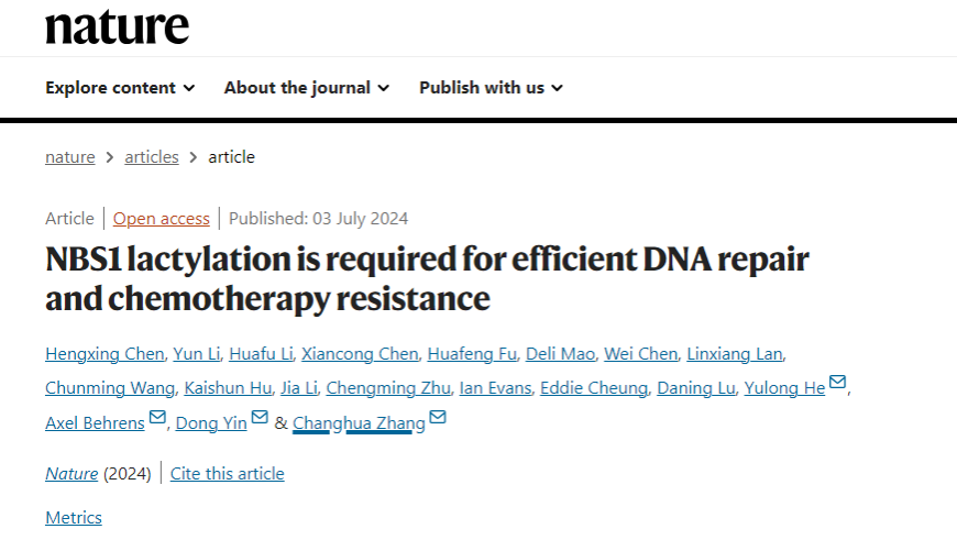 Chinese researchers have solved a longstanding puzzle in the field of oncology, with the results being published by Nature on July 3, Beijing time. The study, led by Professors He Yulong and Zhang Changhua from the Seventh Affiliated Hospital of Sun Yat-sen University, reveals the critical role of NBS1 lactylation in efficient DNA repair and chemotherapy resistance.